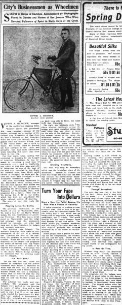 Revision as of 05:12, 13 November 2021 by Morgan (talk | contribs) (Victor A. Hancock J. F. Hancock City's Businessmen as Wheelmen - San Jose Mercury-news, Volume LXXIV, Number 73, 13 March 1908)